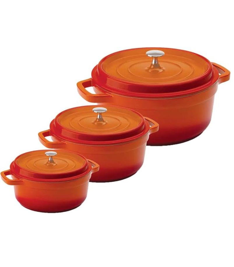 Além disso, as peças podem ir ao forno até 260 °C e são compatíveis com todos os tipos de fogão. Com design sem cantos e acabamento brilhante, são fáceis de limpar e ainda deixam a cozinha mais bonita.